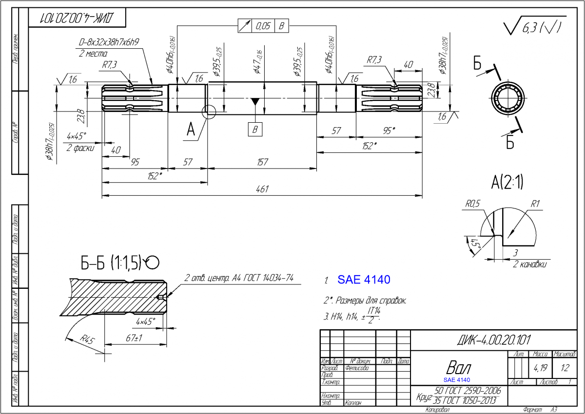 Вал шлицевой ДИК-4.00.20.101(8х32/8х32)
