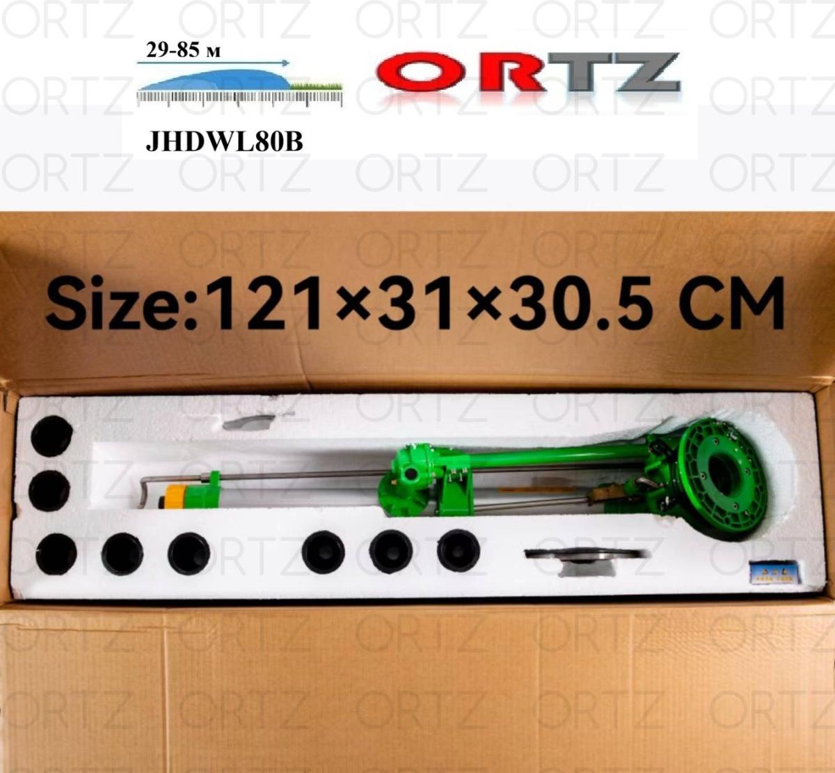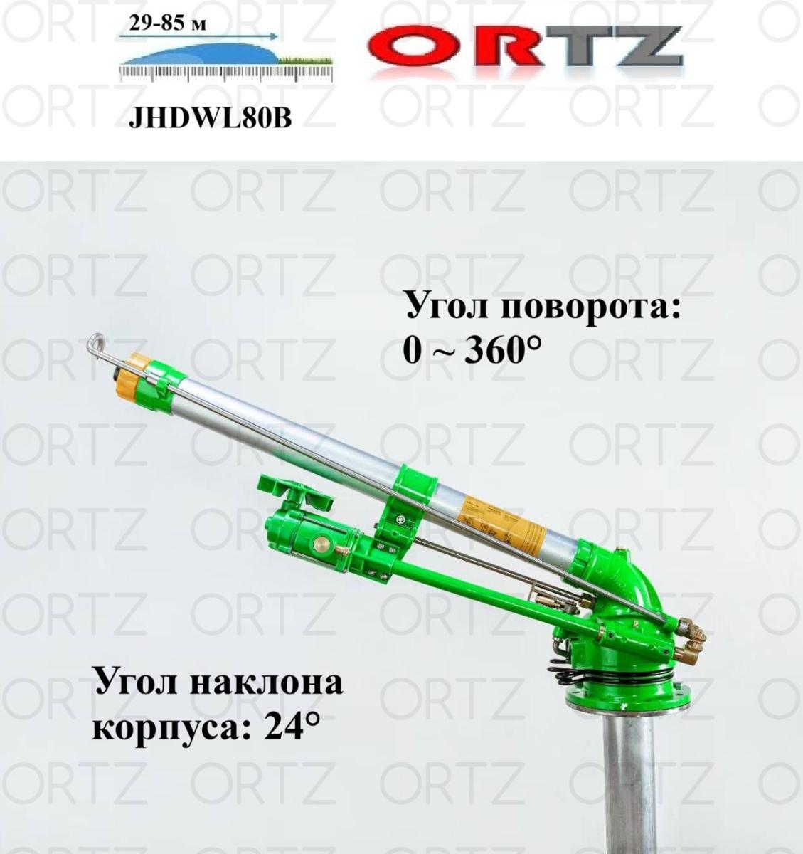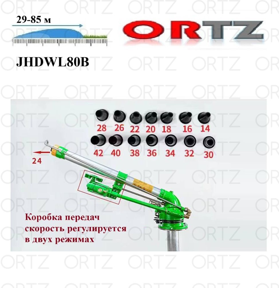 7. Спринклер с радиусом полива 85 м, дождеватель JHDWL80А (Радиус 29~85м, Расход 19,1~207м3/ч, наклон 24°, поворот 0~360°)